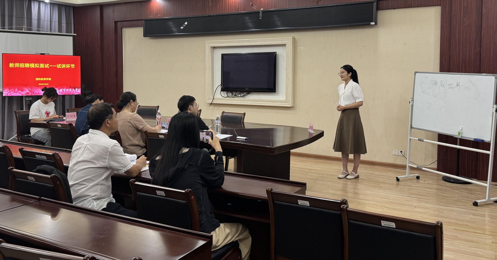 为精准提升毕业生教师职业竞争力,7月2日下午,古天乐代言太阳集团138在外语楼310会议室举办教师招聘模拟面试——试讲专场活动,公司党委副书记潘夏宁、专任教师张寒冰、易丽丽及辅导员张焱老师担任考官,2022级部分员工同步参与观摩学习。