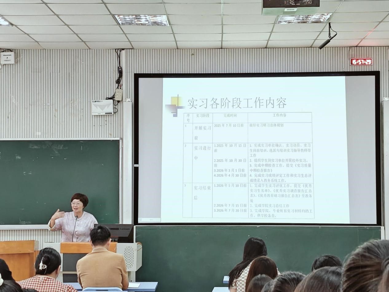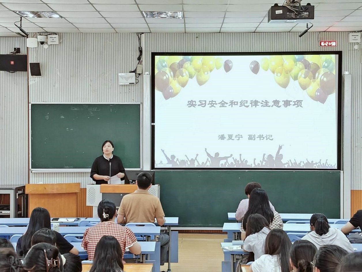 党委副书记潘夏宁以 “安全第一、纪律先行”为原则,从信息安全、行为规范、突发事件应急处理等方面提出明确要求,为实习工作划定纪律红线。