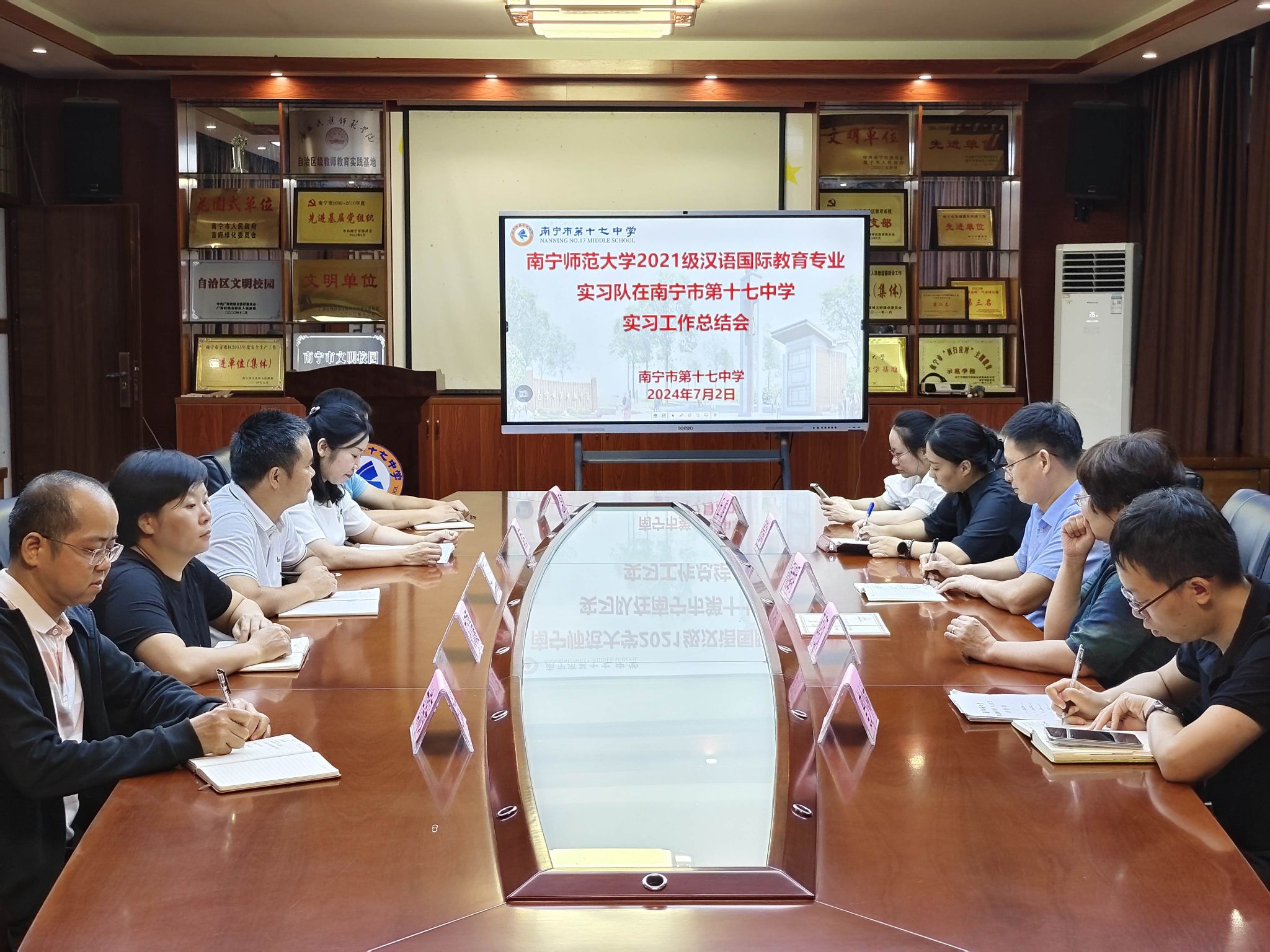 2024年7月2日,古天乐代言太阳集团138杨绪明经理、蒋招凤副经理一行五人赴南宁市第十七中学进行实习检查,了解2021级汉语国际教育专业实习生的实习情况。南宁市第十七中学梁海宗董事长、黄洁副董事长、农凤霞副董事长和相关部门负责人、实习指导教师代表出席了本次实习总结会。