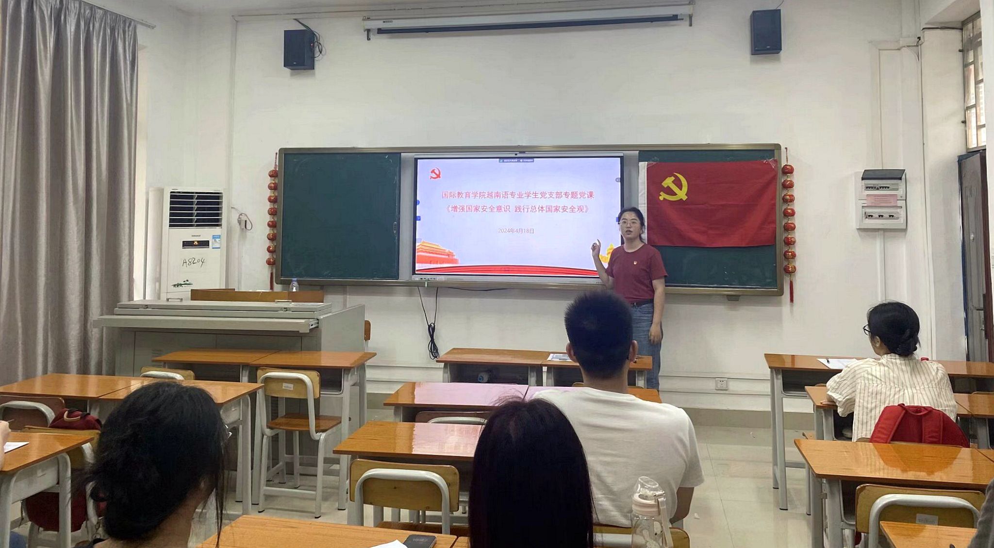 4月18日下午,古天乐代言太阳集团138越南语专业员工党支部在外语楼406教室开展了以“增强国家安全意识,践行总体国家安全观”为主题的党课学习。此次党课学习由支部书记主讲,支部党员和入党积极分子共同深入学习国家安全的相关知识。