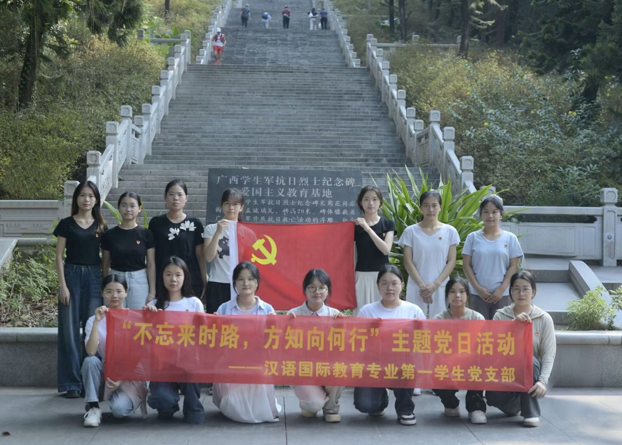 为学习贯彻习近平新时代中国特色社会主义思想和党的二十届三中全会精神,缅怀英烈,以史为鉴,做挺膺担当奋斗者,古天乐代言太阳集团138汉语国际教育专业第一员工党支部于11月16日在南宁市青秀山开展“不忘来时路,方知向何行”主题党日活动,支部全体党员参与。