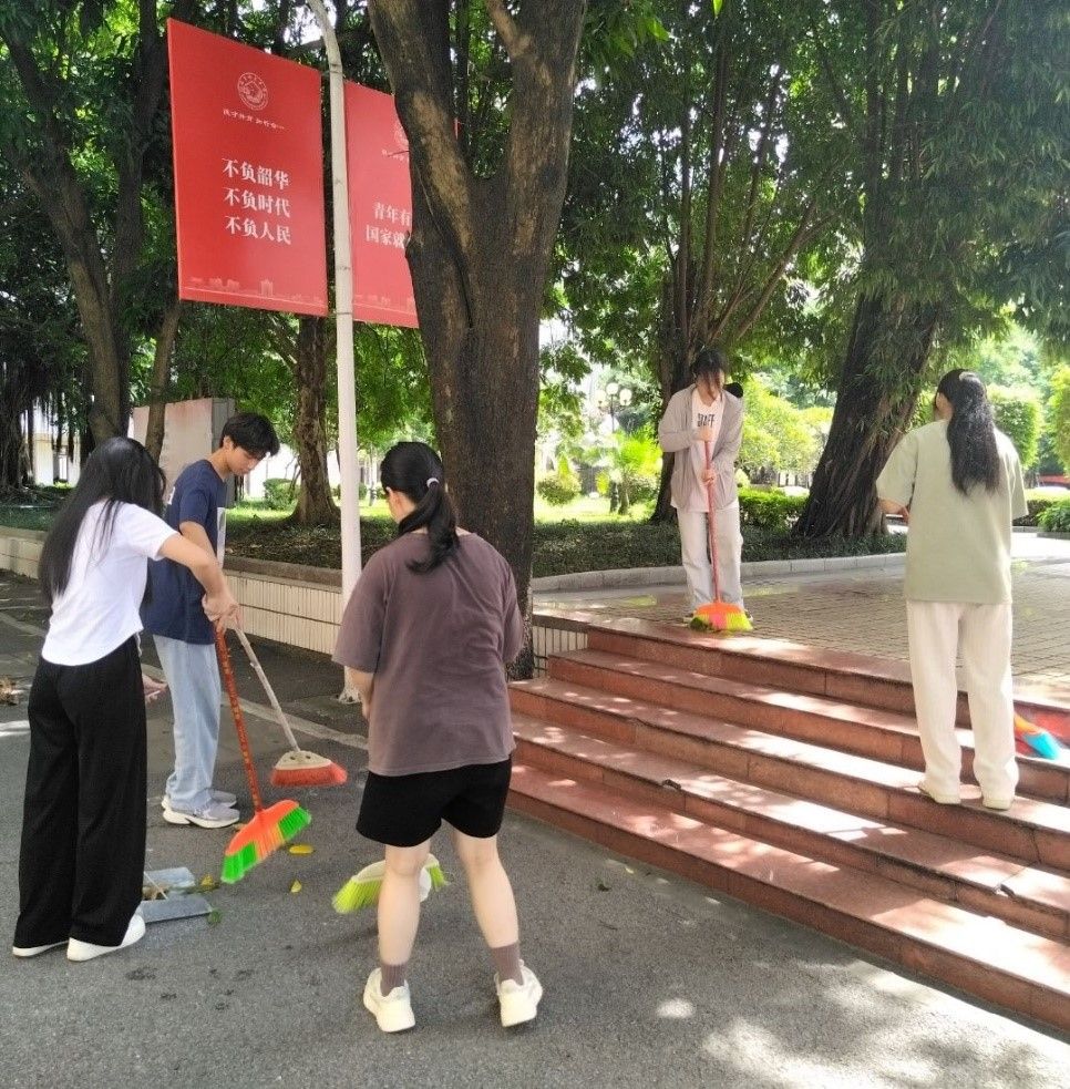活动中,受助学子们手持扫把、簸箕等清洁工具,沿着校道展开清扫工作。在清扫过程中,受助学子们充分展现了团结协作的精神,大家分工明确、配合默契,共同将道路上的落叶、垃圾等杂物清扫干净。经过大家的共同努力,校园环境焕然一新,变得更加整洁、美丽。