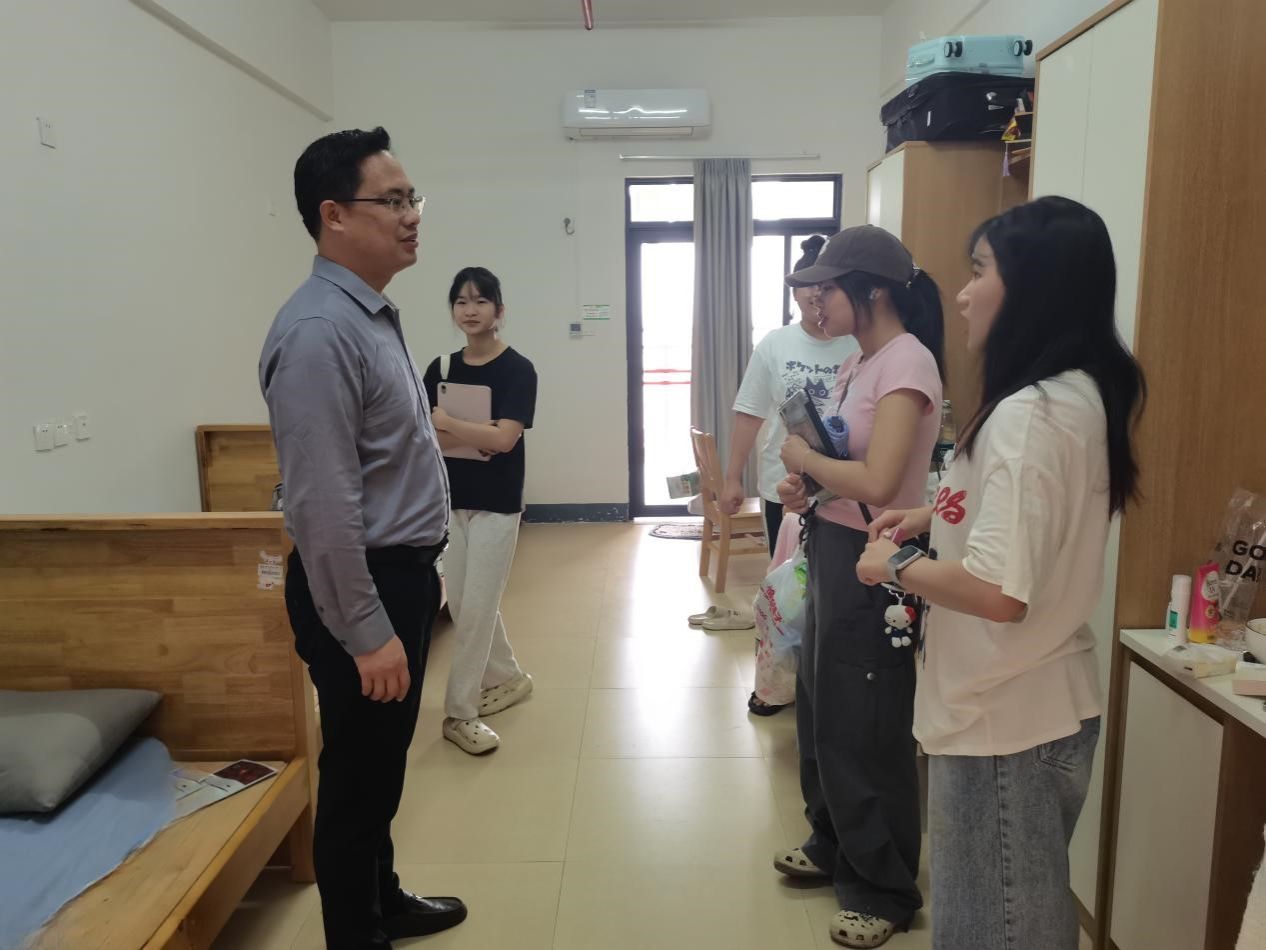 陈副经理与同学们亲切交谈,详细询问学业进展、假期安排,重点检查宿舍用电规范、消防设施等安全情况,同时,叮嘱国际员工要严格遵守宿舍管理规定,做到“人走电断”,共同维护安全居住环境,全力护航国际员工安全健康。