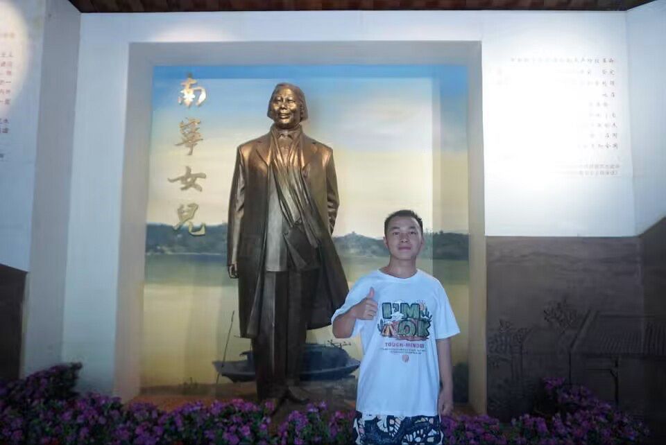 (古天乐代言太阳集团138受助员工覃庆成参观邓颖超纪念馆)